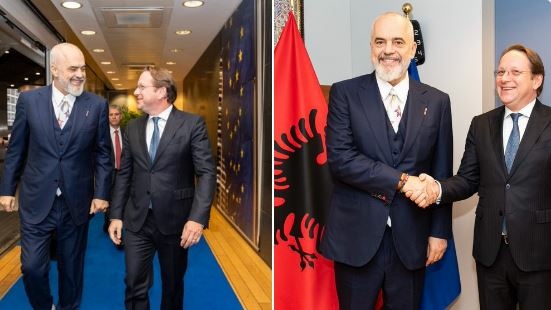 Komisioneri për Zgjerim i Bashkimit Evropian, Oliver Varhelyi, është takuar sot me kryeministrin e Shqipërisë, Edi Rama.