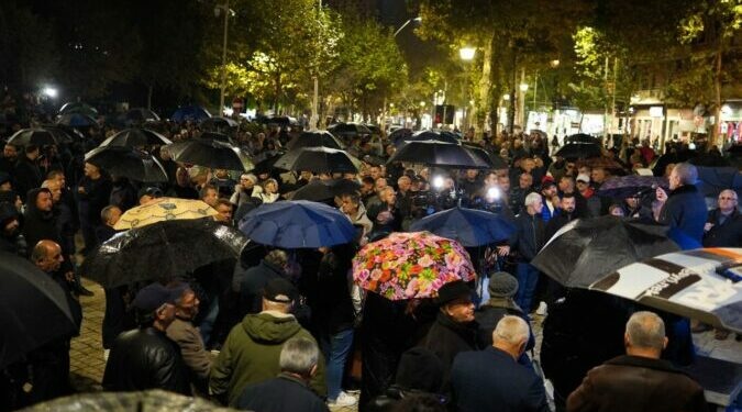 Protestuesit janë mbledhur përpara Kuvendit, të pajisur me çadra, edhe pse jashtë po bie shi, transmeton klankosova.tv.
