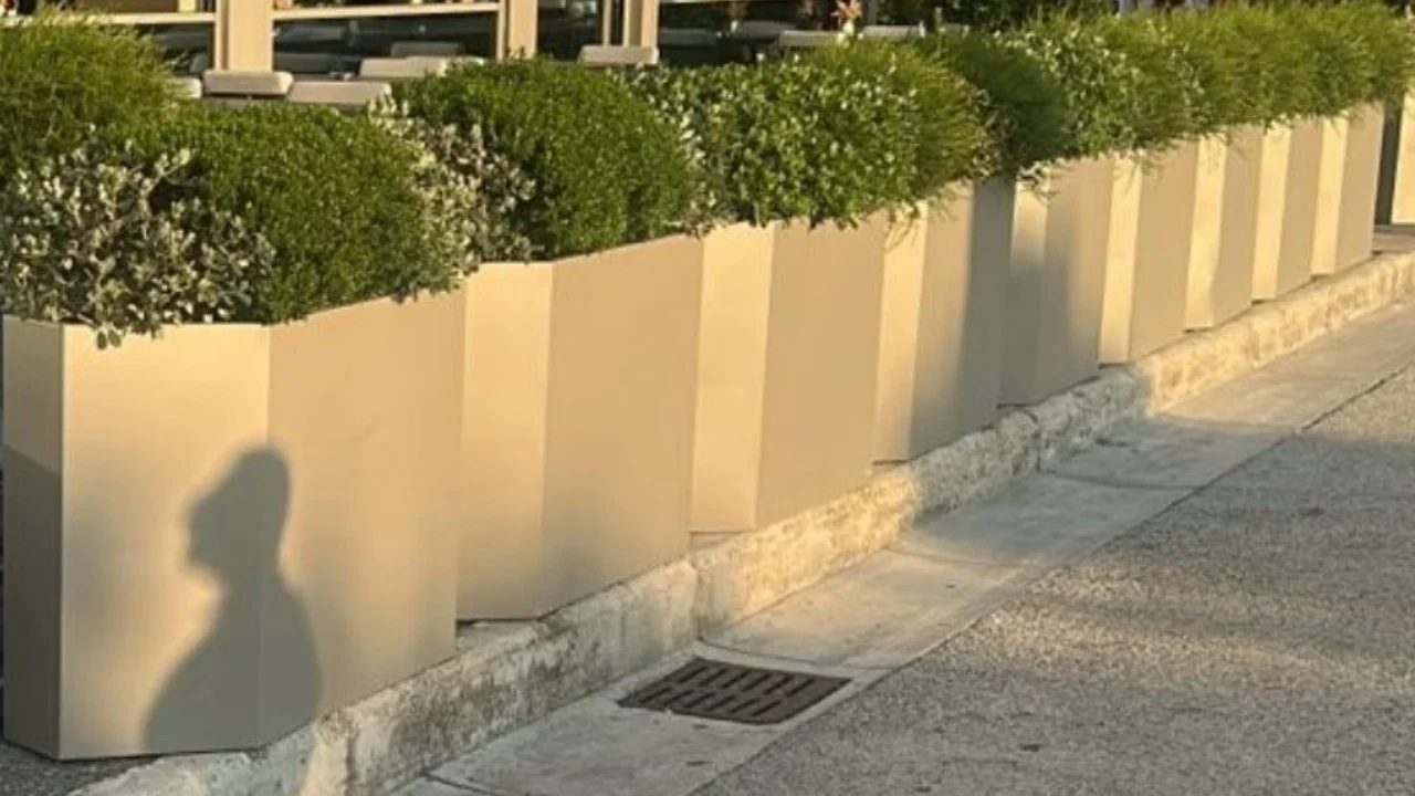 Këtë postim ai e ka shoqëruar edhe me disa foto ku shihen që trotuaret pranë kafeneve janë të bllokuara me barrikada të ndryshme, si vazo lulesh prej betoni.