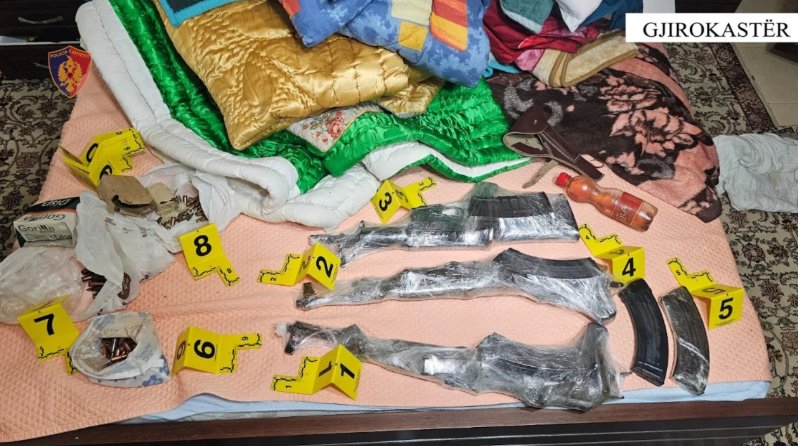Gjatë kontrollit në fshatin Labovë e Kryqit në Gjirokastër, në banesën e 45-vjeçarit Dhimitër Meçi janë gjetur 2 kallashnikovë dhe një armë zjarri automatike, të dyshuar të trafikuar dhe qindra fishekë të kalibrave të ndryshëm.