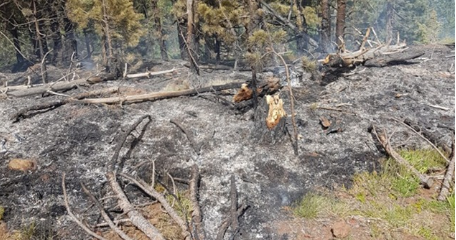 Aktualisht janë përfshirë nga flakët 5 hektarë tokë dhe për shuarjen e tyre është angazhuar Shërbimi Pyjor.