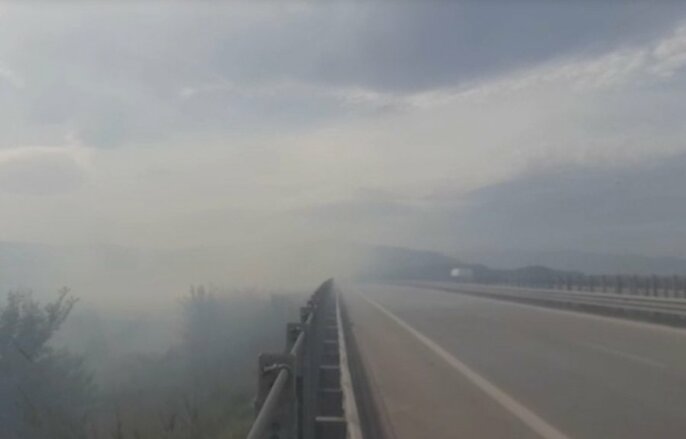 Në krah të autostradës së Vlorës një hapësirë toke e mbjellë me ullinj dhe bimësi të zonës është përfshirë nga flakët.