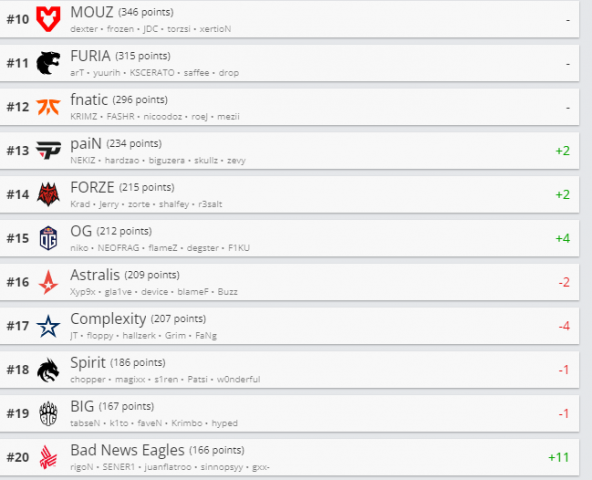 Rezultatet e mira i kanë parë Bad News Eagles të ngritën për 11-të pozicione në ranglistën e skuadrave më të mira në botë.