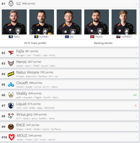 Faqja e specializuar për CS:GO, HLTV.org ka përditësuar renditjen e tabelës duke e vënë skuadrën nga Kosova për herë të parë në top 20 skuadrat më të mira.
