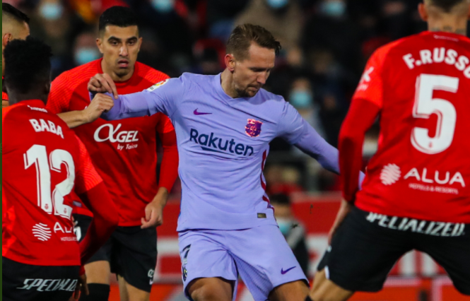 De Jong para se të shënohej gola, e goditi transferzalen me një goditë akrobatike në stilin “Gërshërë” ku fatkeqësisht nuk përfundoj në rrjetën e Mallorcës.