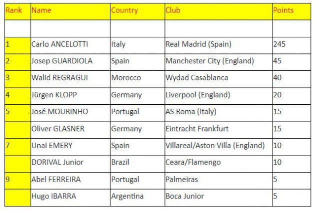 Sa i përket vendit të tretë, është rezervuar për Walid Regragui, përzgjedhësin e Marokut, i cili kishte një ecuri fantastike me këtë kombëtare.