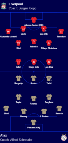 Tashmë janë publikuar formacionet zyrtare për ndeshjes Liverpool-Ajax, e cila është e vlefshme për fazën e grupeve në Champions League.