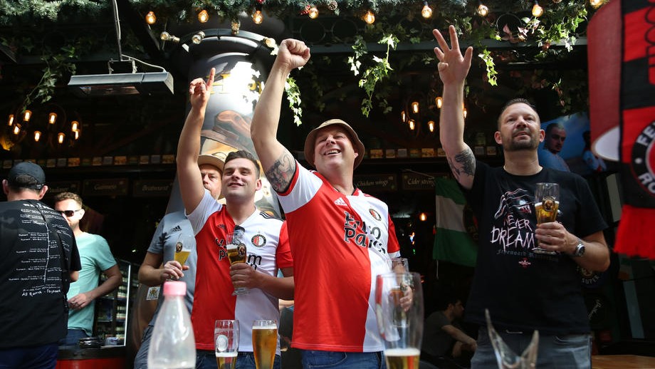 epa09972857 Fans of Feyenoord gather in Tirana, Albania, 24 May 2022. Feyenoord Rotterdam will face AS Roma in the UEFA Europa Conference League final on 25 May 2022. EPA-EFE/MALTON DIBRA