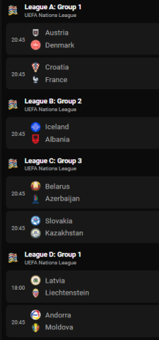 Të gjitha ndeshjet do të zhvillohen më orar të njëjtë në ora 20:45, ndërsa ndeshja e latvisë kundër Lihtenshtajnit do të zhvillohet në ora 18:00/arbresh.info/