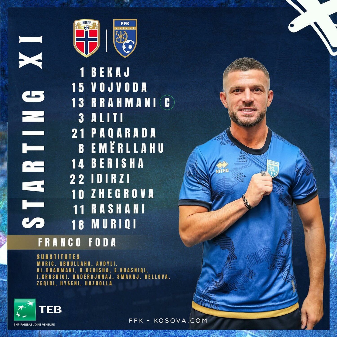 Selektori i Kosovës, Franco Foda gjithashtu ka publikuar formacionin e “Dardanëve” për këtë ndeshje.