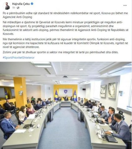 Çeku tutje ka shkruar se kjo është një hap drejt zhvillimit të sportit kosovar. / arbresh.info/