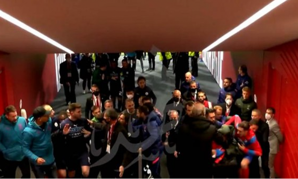 Një video është bërë virale në rrjetet sociale që tregon një përleshje që ndodhi mes lojtarëve dhe stafit stërvitor të Atletico Madrid dhe Manchester City në tunelin që çon në dhomat e zhveshjes së Estadio Wanda Metropolitano.