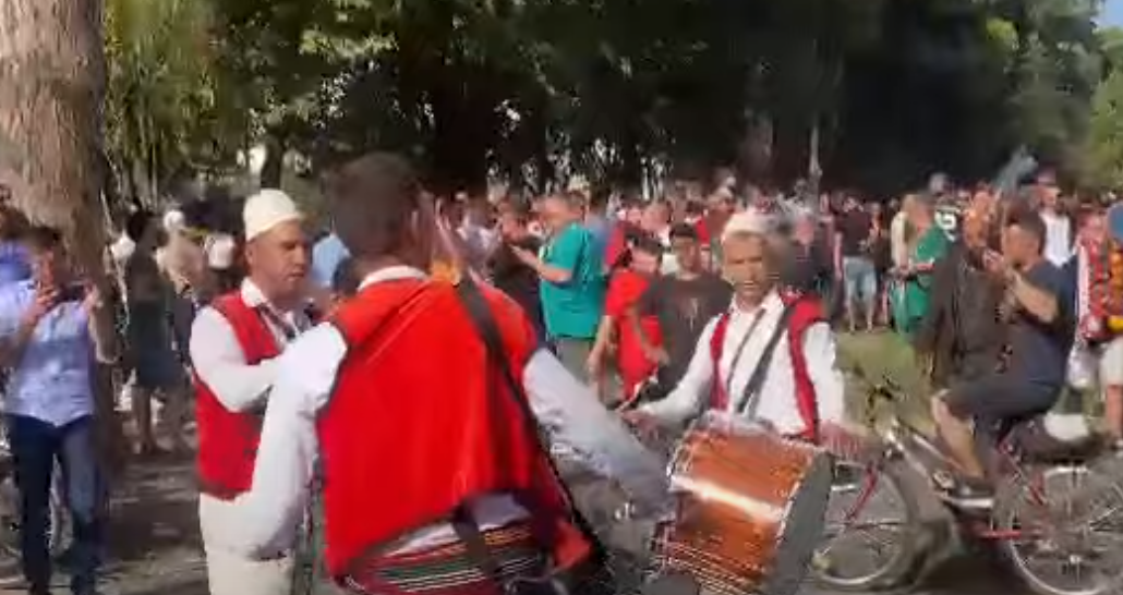Një grup prej tre anëtarësh, veshur me kostume tradicionale shqiptare, qeleshe e fustanell, kanë elektrizuar edhe më tej atmosferën mes tifozëve të cilët gjenden aty prej mëngjesit të sotëm, duke pirë e festuar në pritje të ndeshjes finale Roma – Feyenoord, e vlefshme për kupën e Conference League./TCH/