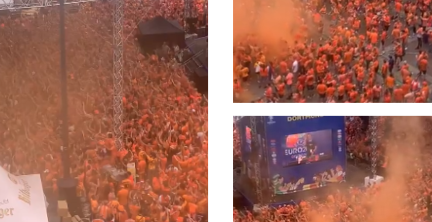 Disa pamje të publikuara në rrjetin social “X” thuhet se deri më tani janë mbi 75 mijë tifozë holandez në qytetin e Dortmundit.