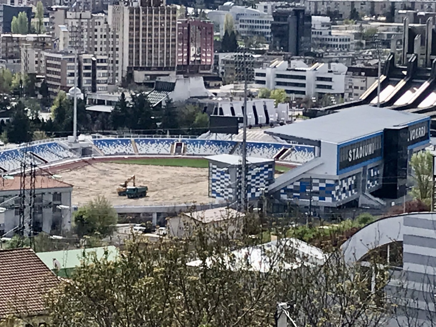 Në këtë stadium i zhvillon ndeshjet edhe kombëtarja e Kosovës, për çka ka shkruar edhe ambasadori francez në Kosovë, Olivier Guerot, i cili postoi një fotografi nga punimet që po zhvillohen në stadium.