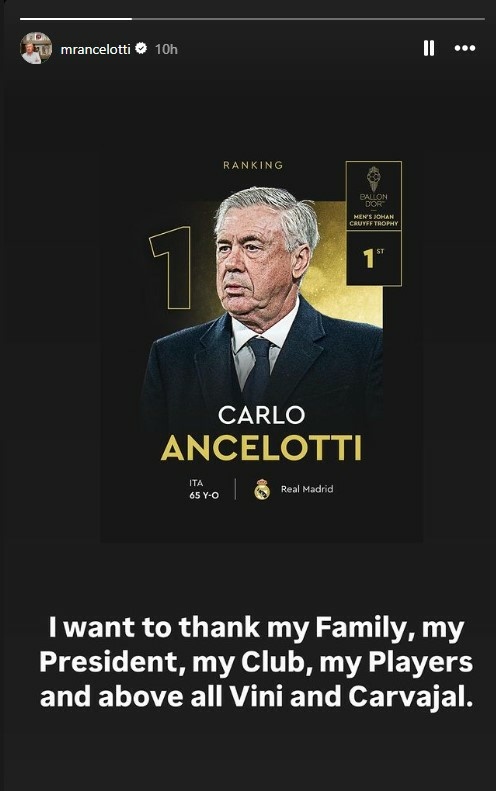 Italiani përmes Instagramit reagoi për çmimin ‘Trajneri më i mirë i vitit’, por u sigurua që t’i jap merita Viniciusit.