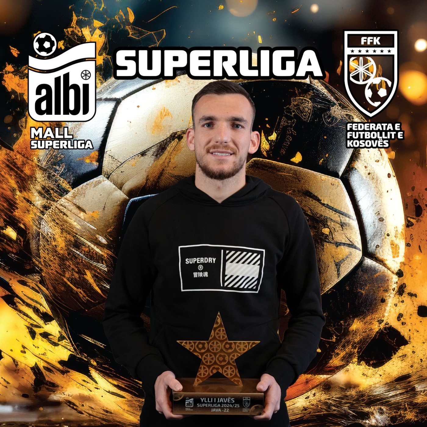 Ky çmim për javën e 22-të në Albi Mall Superligë i është ndarë futbollistit të FC Malisheva, Arlind Veliu.