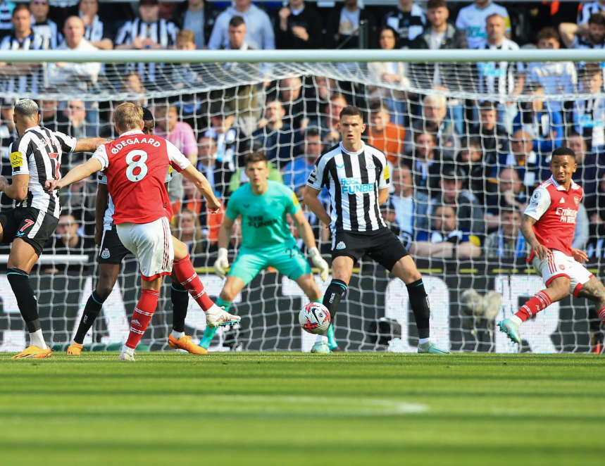 Odegaard duhet të kishte dyfishuar epërsinë e “Topçinjve” pikërisht në goditjen e pjesës së parë, por përpjekja e tij nga afër u bllokua mirë nga Pope këtë herë.