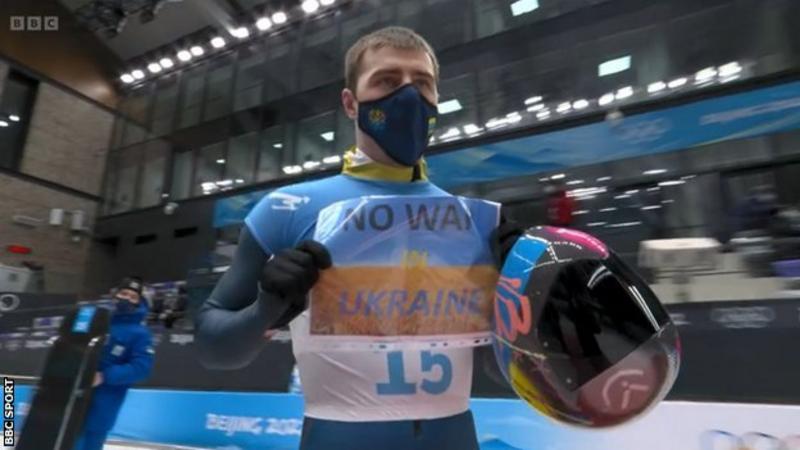 Një atlet ukrainas shfaqi një pankartë kundër luftës gjatë një gare në patinazh në Lojërat Olimpike në Pekin në mes tensioneve në rritje në kufirin e Ukrainës me Rusinë, raporton BBC, përcjell shqip.com.