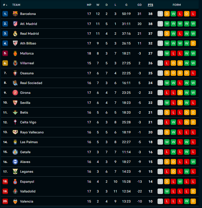 Të drejtuarit e Simeones tashmë kanë 38 pikë aq sa ka edhe Barcelona që është liderë ndërsa kanë lënë mbrapa Real Madridin që ka një pikë më pak.