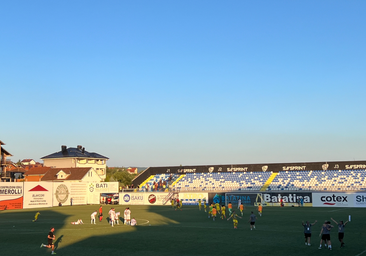 Suharekasit morën një goditje të rëndë në minutën e 36-të kur gjyqtari i takimit Oleksiy Derevinskyi e ndëshkoi me karton të kuq Adetunjin duke i lënë ata me një lojtar më pak në fushë.