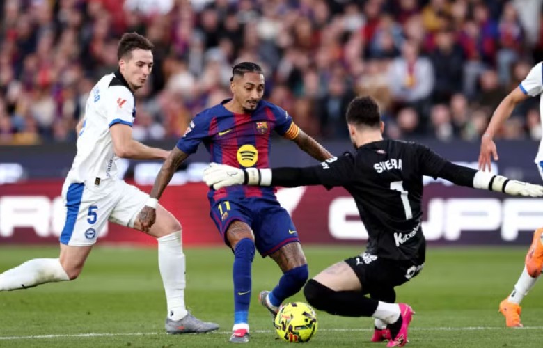 Alaves e ka pasur mundësinë ta dyfishojë epërsinë menjëherë, por Barça është rikthyer shpejt në lojë. Pas shtatë minutash, Raphinha ka goditur për herë të parë drejt portës, dhe pak më vonë Lamine Yamal ka shënuar, pas një aksioni të brazilianit në krahun e majtë.