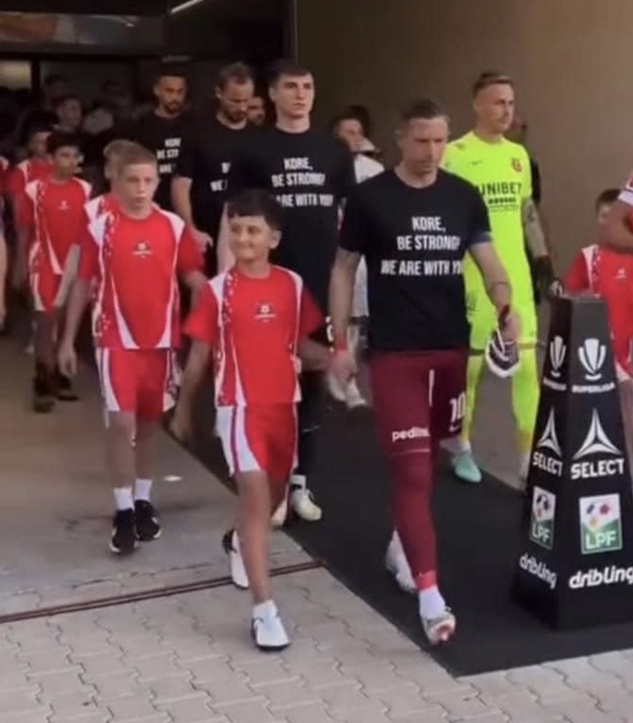 Para fillimit të kësaj ndeshje, lojtarët e gjigantit rumun u solidarizuan me yllin kosovar Meriton Korenica pas vdekjes së babait të tij ditë më parë.
