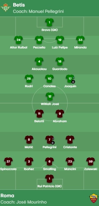 Janë publikuar formacionet zyrtare për ndeshjen Real Betis – Roma, e vlefshme për Europa League.