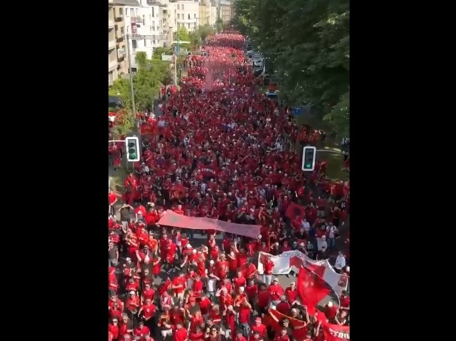 Para ndeshjes shumë shqiptarë ia kanë mësyer stadiumit të Dusseldorfit.