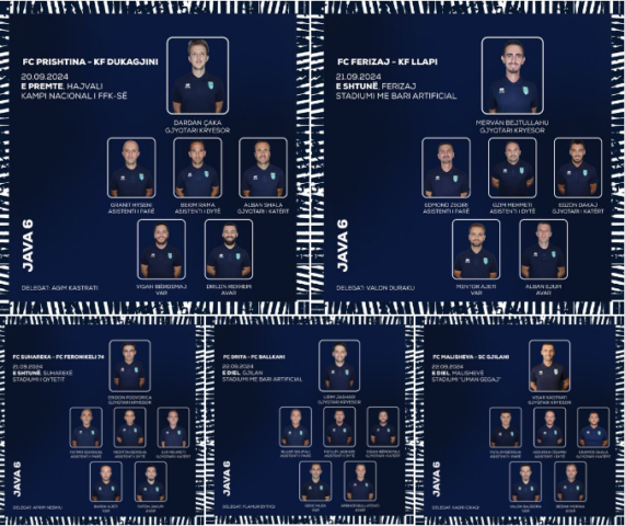 Në ditën e shtunë do të luajnë Ferizaj-Llapi, ku gjyqtar kryesor do të jetë Mervan Bejtullahu i ndihmuar nga asistentët Edmond Zeqiri dhe Gzim Mehmeti, ndërsa ndeshja tjetër Suhareka-Feronikeli 74 do të gjykohet nga Eridon Podvorica me ndihmësit Fatmir Sekiraqa dhe Meriton Berisha.