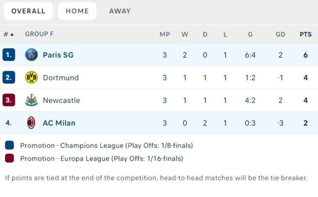 Milani pret PSG-në dhe Borussia Dortmund në shtëpi. Dhe e mbyll fazën e grupeve në udhtim tek Newcastle në “St. James Park”./ss