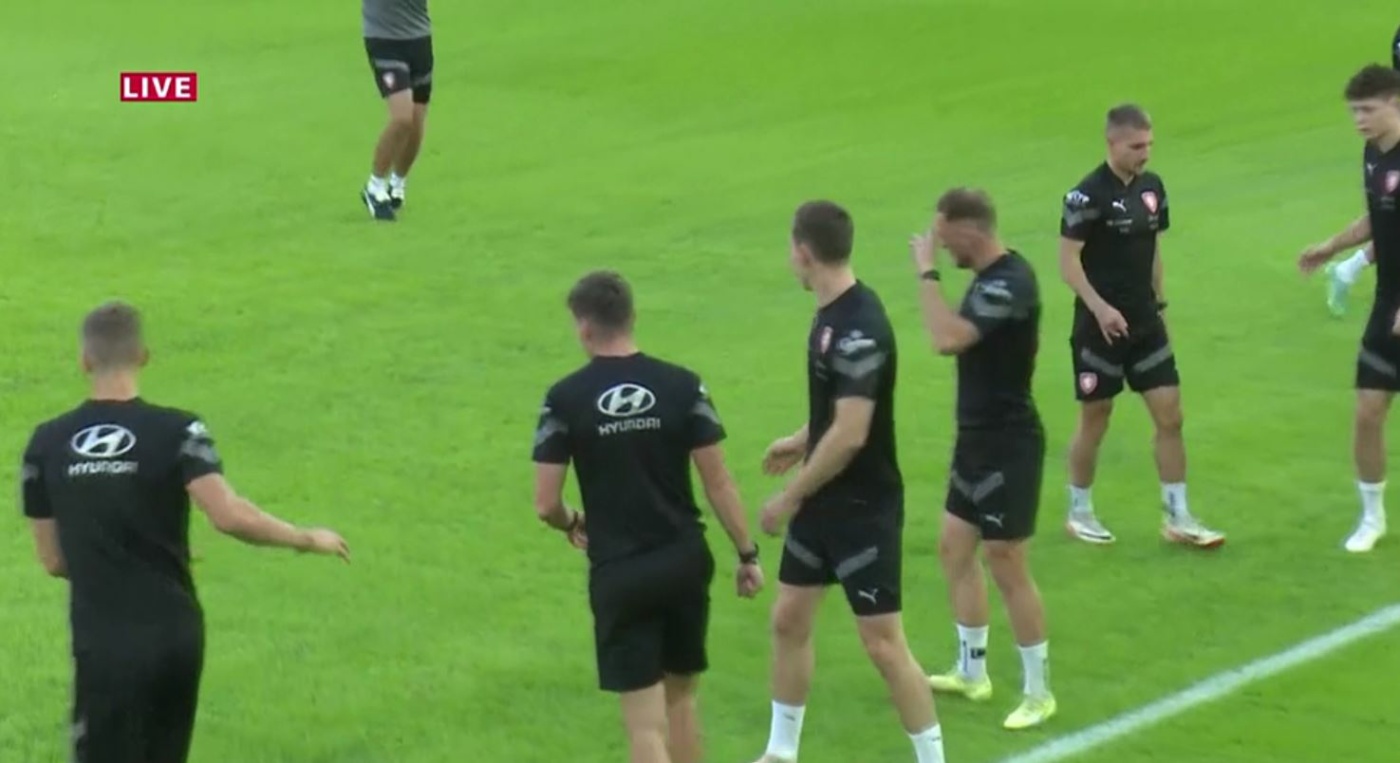 “Sport News” transmetoi live stërvitjen e skuadrës së Çekisë, e cila ishte e plotë, me lojtarët që po stërviteshin të gjithë.