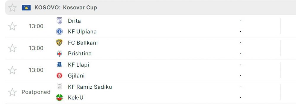 Këtë mesjavë do të zhvillohen ndeshjet çerekfinale të Kupës së Kosovës në futboll. Ballkani – Prishtina dhe Llapi – Gjilani, do të jenë ndeshjet më interesante dhe kryesore të kësaj faze. Drita do të ketë punë me Ulpianën, teksa përballja e fundit do të jetë në mes të Ramiz Sadikut me KEK-un.