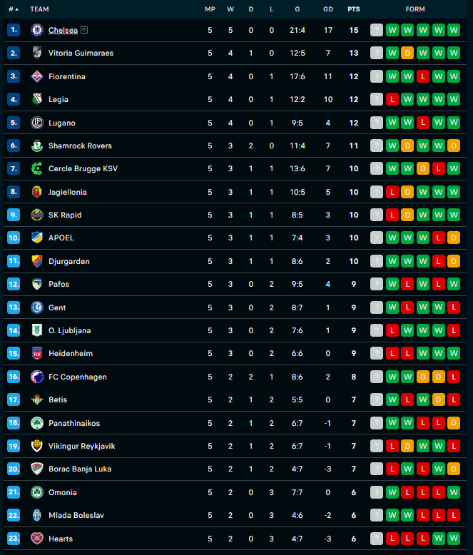 Ndërkohë, edhe në Conference League, londinezët kanë bërë punë të mirë pasi në pesë ndeshjet e para kanë 15 pikë dhe janë të vetmit me bilanc qind për qind.
