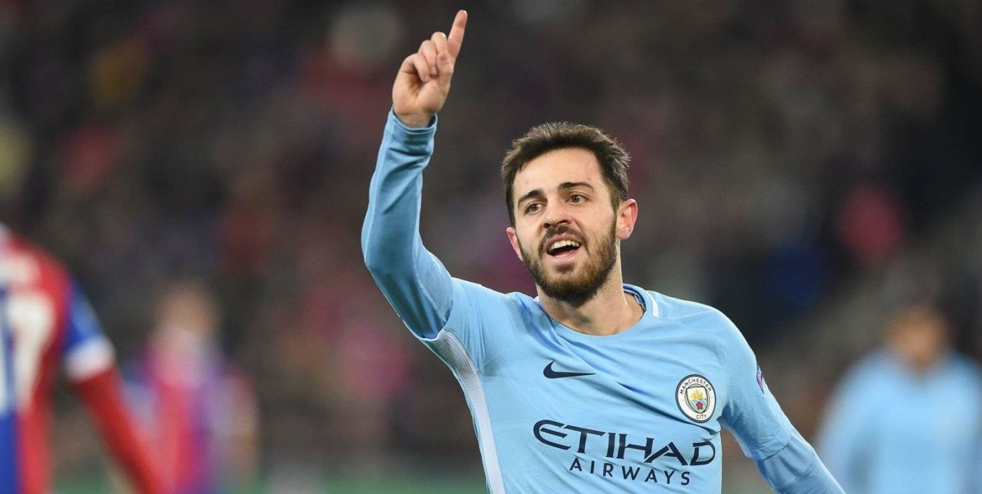 Manchester City's Portuguese midfielder Bernardo Silva celebrates after scoring a goal during the UEFA Champions League round of 16 first leg football match between Basel and Manchester City at the Saint Jakob-Park Stadium in Basel on February 13, 2018. / AFP PHOTO / SEBASTIEN BOZON (Photo credit should read SEBASTIEN BOZON/AFP/Getty Images)