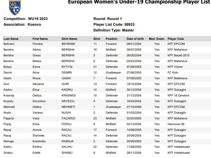 Federata e Futbollit e Kosovës prej 8 deri më 14 nëntor do të jetë nikoqire e miniturneut kualifikues për Grupin 5 të Ligës B për kualifikimet e Evropianit 2023 për grupmoshën nën 19-vjeç për vajza.