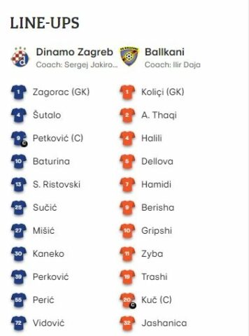 Dinamo Zagreb luan me këtë formacion: Zagorac, Sutaio, Petkovic, Baturina, Ristovski, Sucic, Misic, Kaneko, Perkovic, Peric, Vidovic