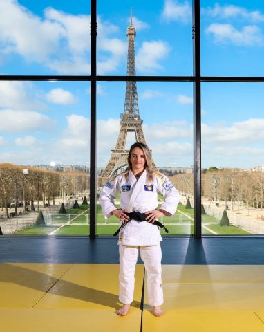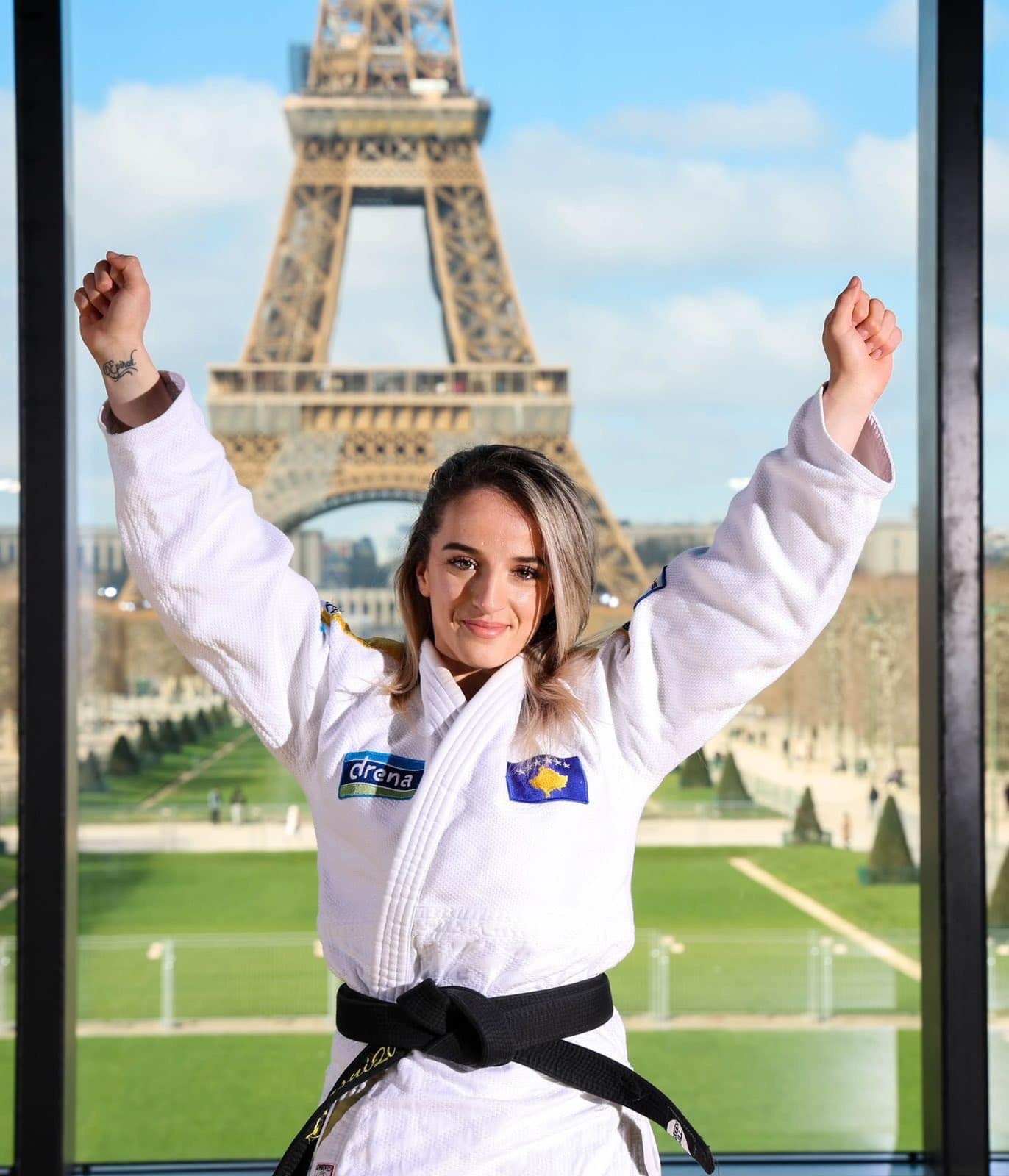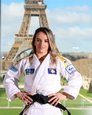 Komiteti Olimpik i Kosovës ka shpërndarë foto të xhudistes kosovare, Distria Krasniqi gjatë fushatës së Federatës Ndërkombëtare të Xhudos për të shënuar “500 ditë deri në Lojërat Olimpike në Paris”.