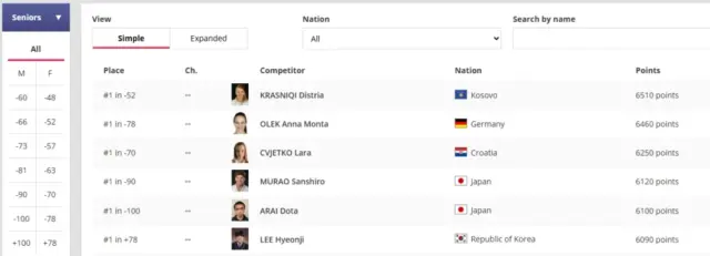 Sipas renditjes më të fundit, Distria mban sërish vendin e parë në botë në kategorinë -52 kg, me plot 6,510 pikë, e ndjekur nga Marscha Ballhaus në vend të dytë dhe Uta Abe në vend të tretë.