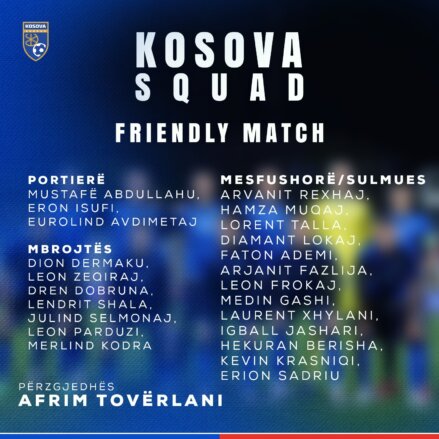 Tovërlani ka grumbulluar 23 futbollistë për këto dy sfida dhe synon të ndërtojë një formacion para sfidave kualifikuese. /Telegrafi/
