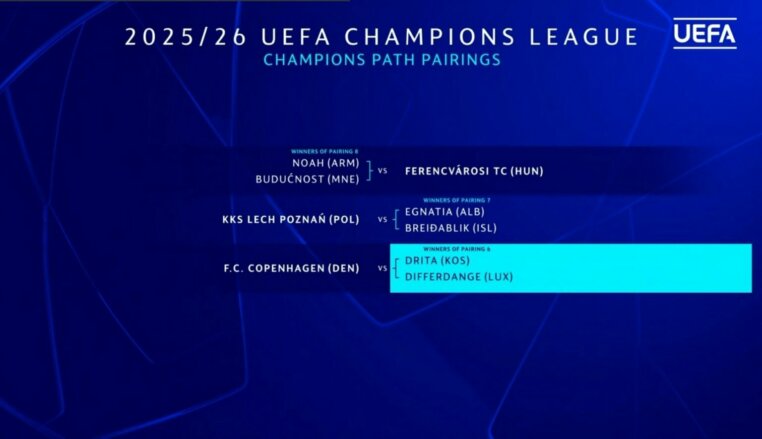 Kampionia e Kosovës në futboll, Drita, tashmë e ka mësuar kundërshtarin e mundshëm në rrethin e dytë të kualifikimeve për Ligën e Kampionëve.