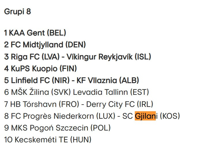 Gjilanasit do të përballen me njërën nga KAA Gent, Midtjylland, Kups ose fituesit e çifteve Riga – Vikingur ose Linfield – KF Vllaznia Shkodër. /Telegrafi/