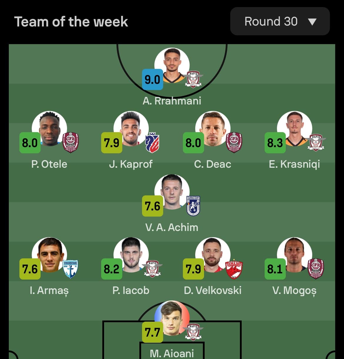 Fal këtyre performancave të shkëlqyera Rrahmani dhe Krasniqi zunë vend në formacionin më të mirë të javës në Rumani.