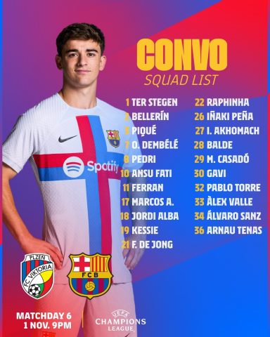 Skuadra katalonase sapo ka njoftuar lojtarët e ftuar për ndeshjen ndaj Plzenit.
