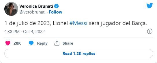 “Më 1 korrik 2023, Messi do të jetë lojtar i Barcelonës”, ky është postimi në “Twitter” i publikuar pasditen e sotme nga Veronica Brunati, një gazetare argjentinase dhe mike e ngushtë e Messit dhe familjes së tij.