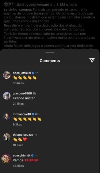 Trajneri italian, Roberto Mancini i ka reaguar Sylvinhos me një koment në Instagram.