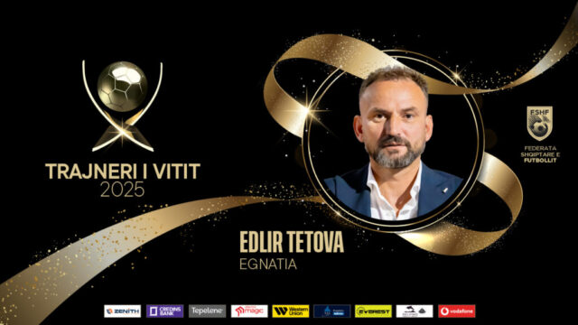 Për të dytin vit radhazi, tekniku i Egnatias, Edlir Tetova është shpallur fitues i trofeut “Trajneri i vitit 2025”, pas një tjetër edicioni të shkëlqyer me ekipin rrogozhinas, me të cilin fitoi kampionatin.