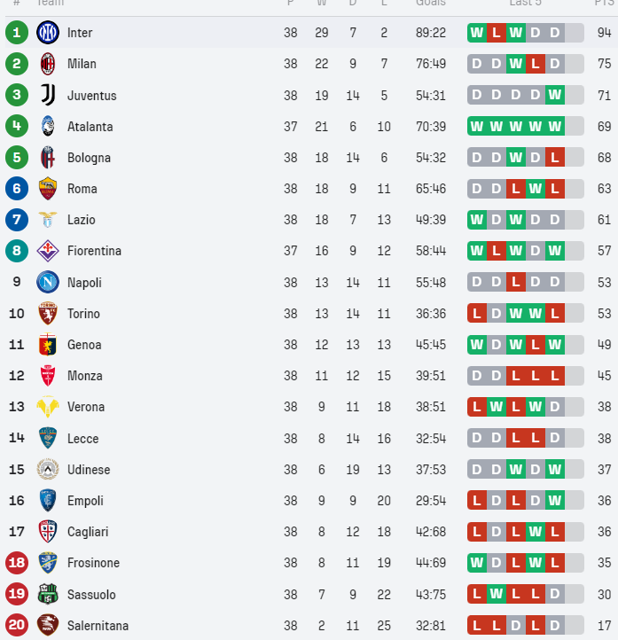Kjo fitore e mban Empoli në Serie A, pasi që fitorja e Udineses ndaj Frosinones, bëri që kjo e fundit të bie në Serie B.