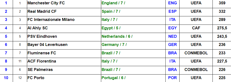 Federata Ndërkombëtare e Historisë dhe Statistikave në Futboll, IFFHS ka publikuar renditjen e skuadrave të më mira për vitin 2023.
