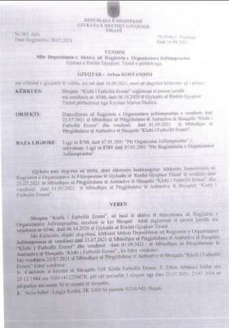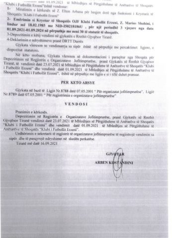 Më tej, Topçiu u është përgjigjur akuzat e ngritura edhe për Asamblenë e SHRF Durrës dhe përfaqësimin e klubit të Erzenit në punimet e kësaj mbledhjeje, teksa ka bërë publike edhe vendimin e gjykatës që saktëson përfaqësuesit e klubit të Erzenit në Asamble dhe rrëzon pretendimet e Bashkisë së Shijakut.